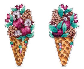 В наборе - белая пластиковая канва 14 каунта, нитки мулине ПНК им.Кирова 21 цв., разобранные на органайзере, игла, бумажная схема и инструкция.