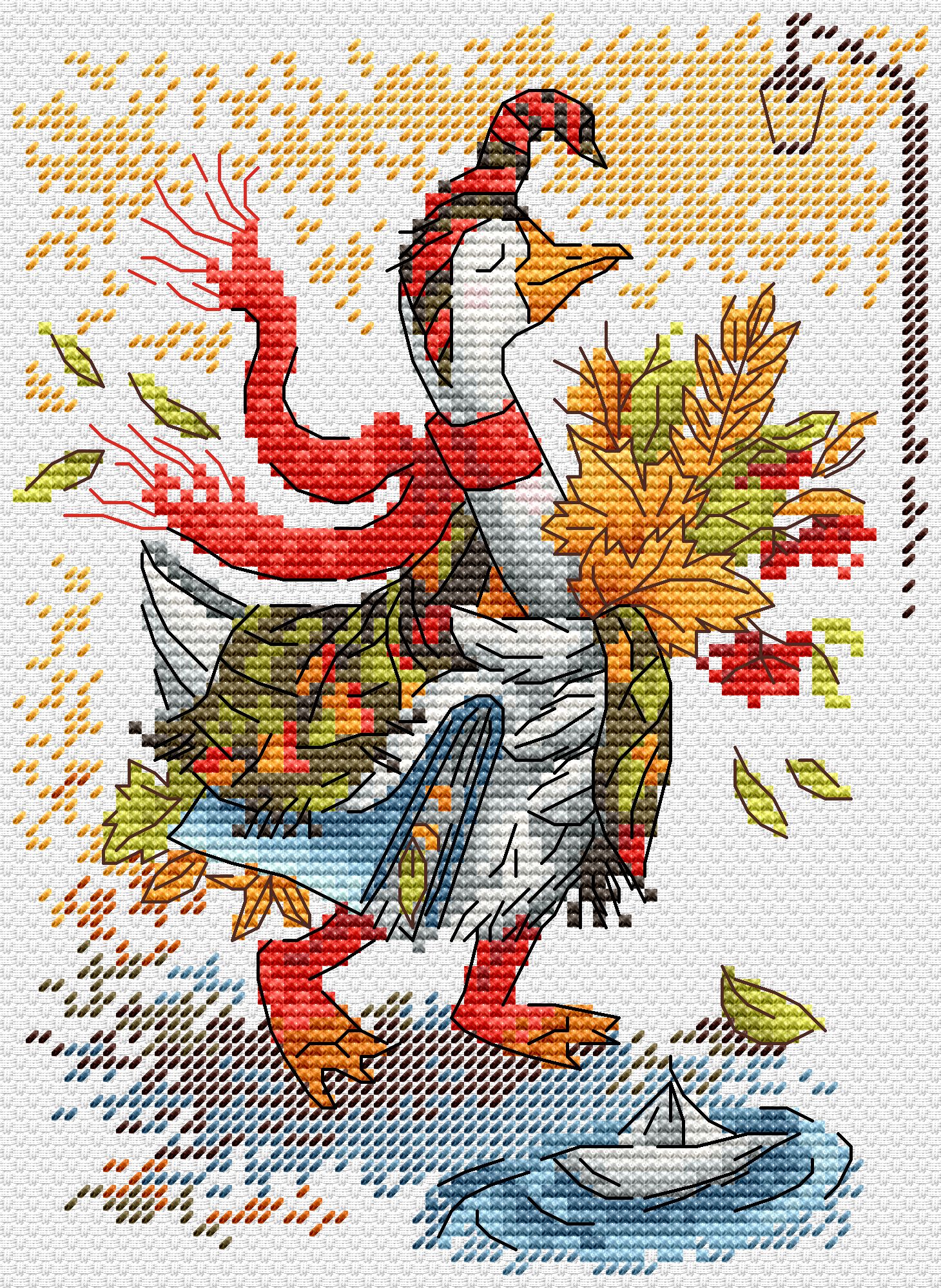 В наборе - белая канва 14 каунта, нитки мулине ПНК им.Кирова 20 цветов, разобранные на органайзере, игла, схема бумажная и электронная Makosh, руководство по вышиванию.