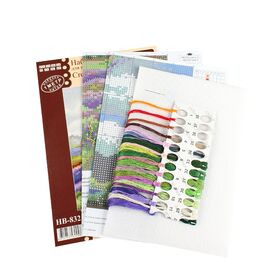 В наборе - хлопчатобумажная канва аида 16 белая, нитки мулине Гамма 33 цв., разобранные на органайзере, игла, цвето-символьная схема и руководство по вышиванию.