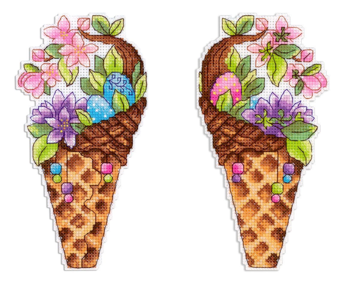 В наборе - белая пластиковая канва 14 каунта, нитки мулине ПНК им.Кирова 24 цв., разобранные на органайзере, игла, бумажная схема и инструкция.