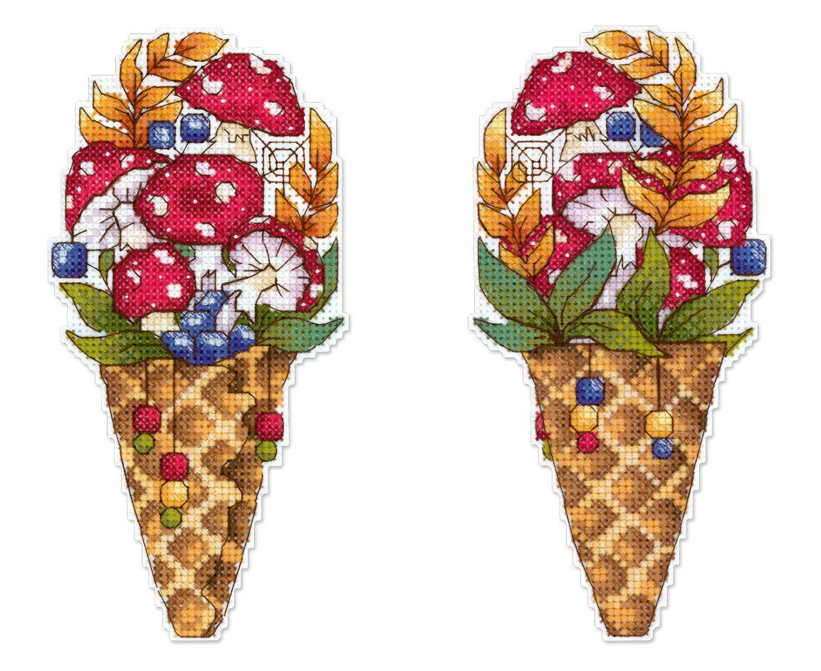 В наборе - белая пластиковая канва 14 каунта, нитки мулине ПНК им.Кирова 23 цв., разобранные на органайзере, игла, бумажная схема и инструкция.