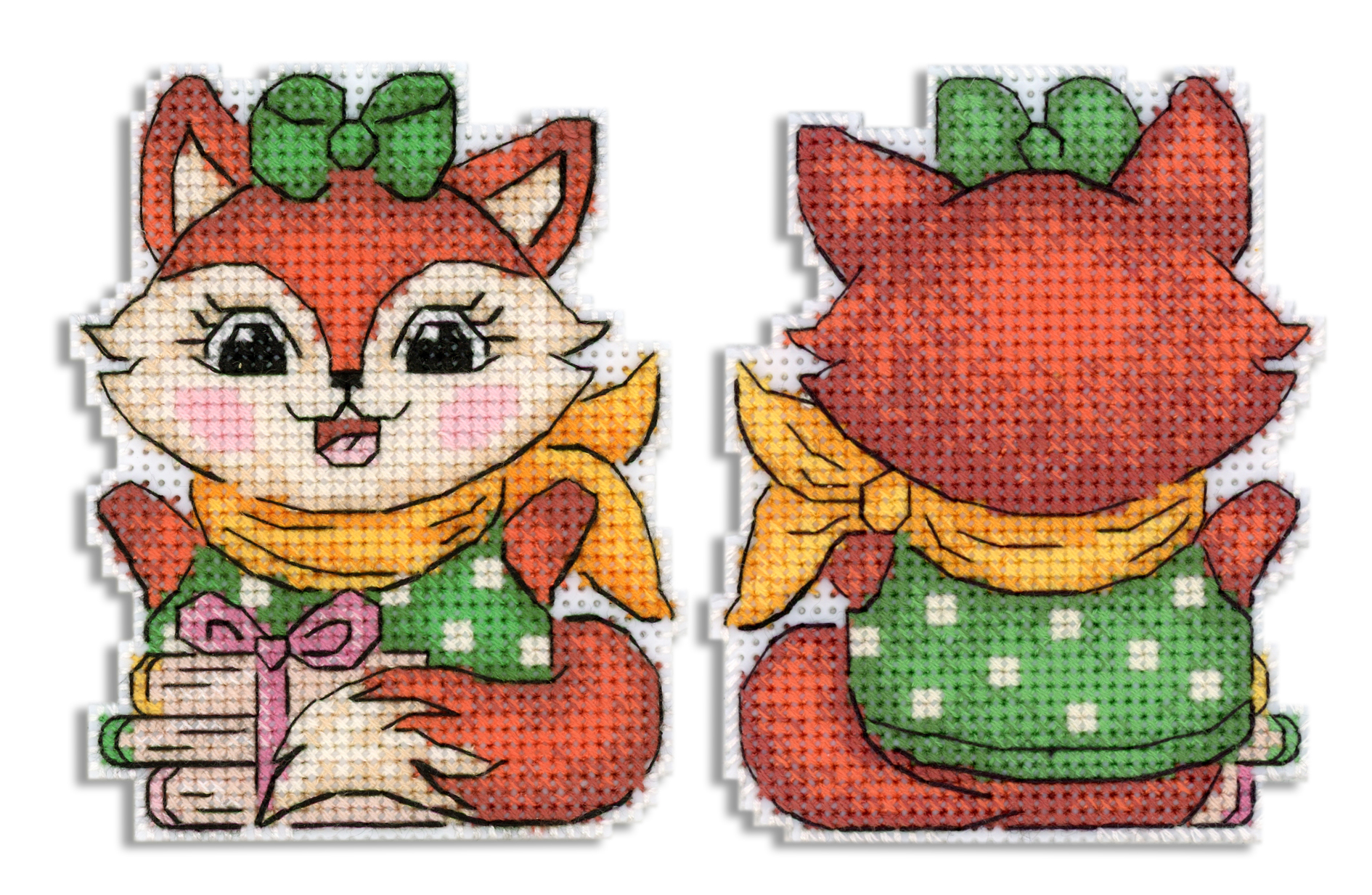 В наборе - белая пластиковая канва 14 каунта, нитки мулине ПНК им.Кирова 13 цв., разобранные на органайзере, игла, схема бумажная и электронная Makosh, руководство по вышиванию.