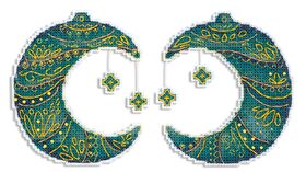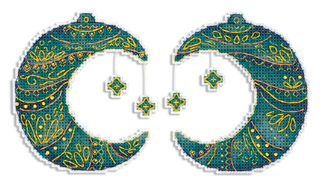 В наборе - белая пластиковая канва 14 каунта, нитки мулине ПНК им.Кирова 7 цв., разобранные на органайзере, бисер - 1 цвет, нитки металлик - 2 цвета, игла, бумажная схема и инструкция.