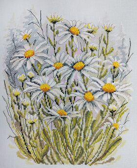 канва Linda 27 ct голубая, мулине Finca 21 цв., игла, инструкция, схема комбинированная.