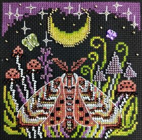 Канва Aida 14 ct черная, мулине Finca 12 цв., бисер, декоративные элементы, игла, инструкция, схема черно-белая.