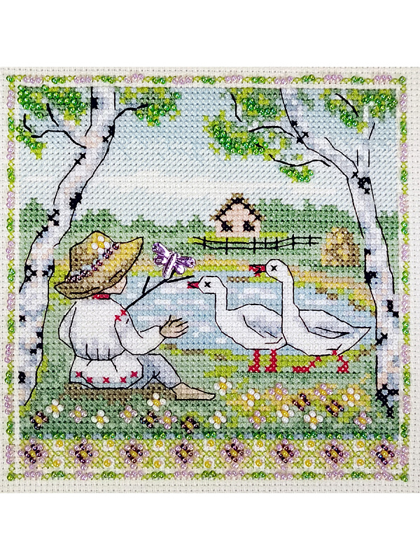 Канва Aida 14 ct бежевая, мулине Finca 12 цв., декоративные элементы, бисер, игла, инструкция, схема черно-белая.