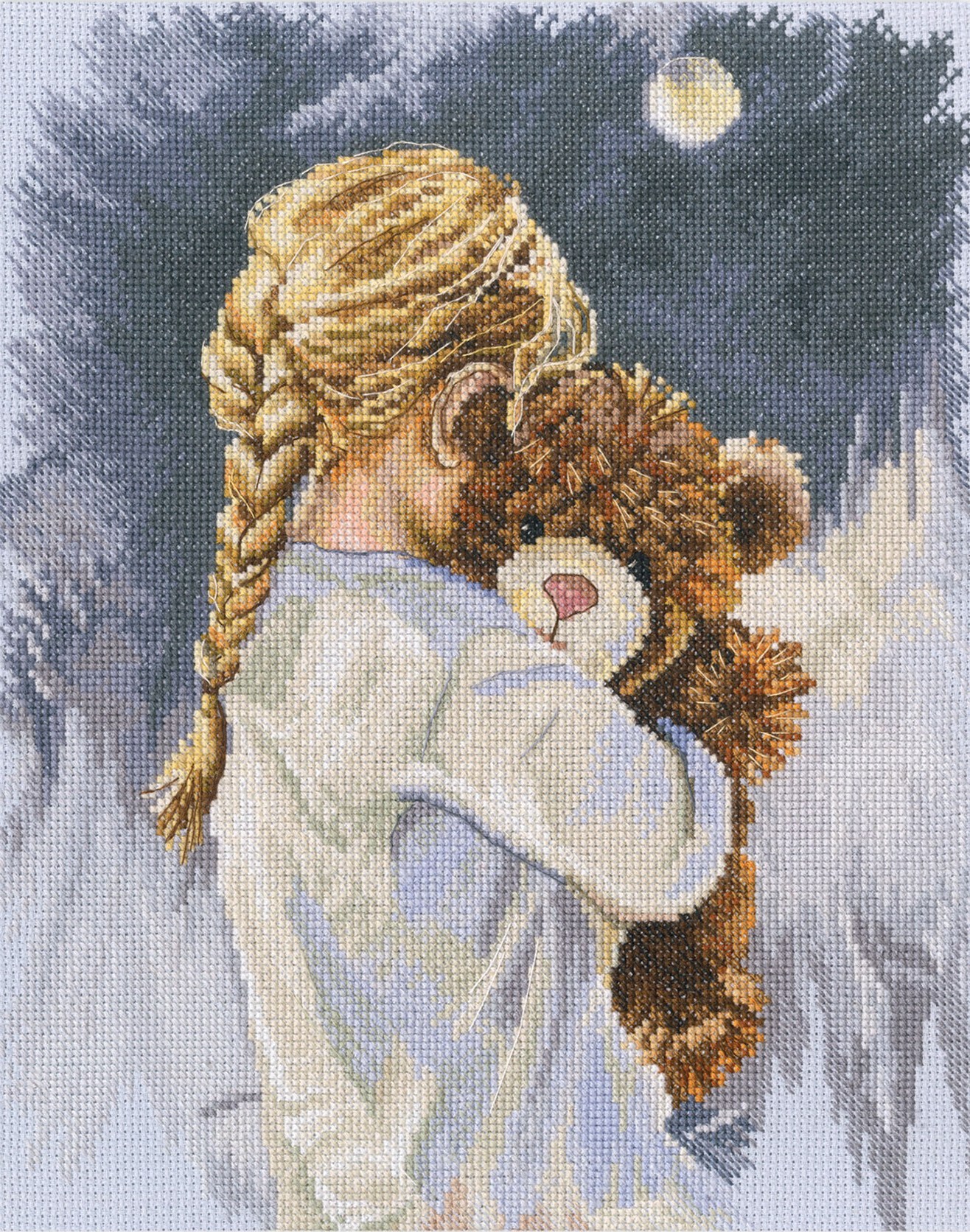 В наборе - Аида 14 Серо-голубая, хлопковое мулине (100% хлопок) , символьная схема и игла.