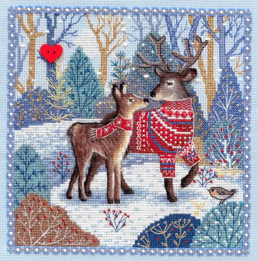 В наборе: канва № 16 Aida "Zweigart" (Германия) небесно-голубого цвета , без нанесенного рисунка ; мулине "DMC" (Франция) ; мулине "Gamma" (Россия); мулине "Cloud" для начёсывания и создания объёма деталей вышивки; металлизированные золотистые нити с перламутром; ювелирный бисер разных фактур "Preciosa" (Чехия), белоснежный бисер "Preciosa" (Чехия) ; деревянная пуговичка в форме алого сердечка ; игла для ниток ; игла для ювелирного бисера ; лента -липучка для начёсывания мулине "Cloud" ; крупная черно белая символьная схема для вышивания с цветным back stitch; QR-код для скачивания электронной схемы в формате SAGA; QR-коды: инструкция по вышиванию, декорированию , социальные сети, сайт. Частичная зашивка нитками .